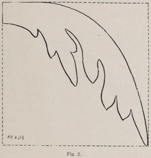 A good method of working out ideas for pieces of this character is to make numerous rough sketches on paper with a lead pencil, making one line over another without erasing. When one gets what he thinks is good it is redrawn and perfected. It may then be worked in the material.