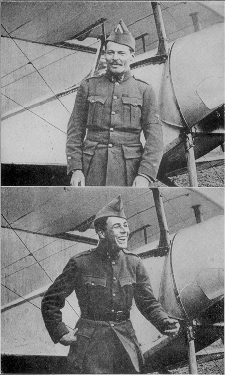 "Everything, or else I've gone nutty," is the indignant reply, delivered while disengaging a leg from its Teddy Bear trousering. "Why, I emptied my whole roller on a Boche this morning, point blank at not fifteen metres off. His machine gun quit firing and his propeller wasn't turning and yet the darn fool just hung up there as if he were tied to a cloud. Say, I was so sure I had him it made me sore--felt like running into him and yelling, 'Now, you fall, you bum!'"