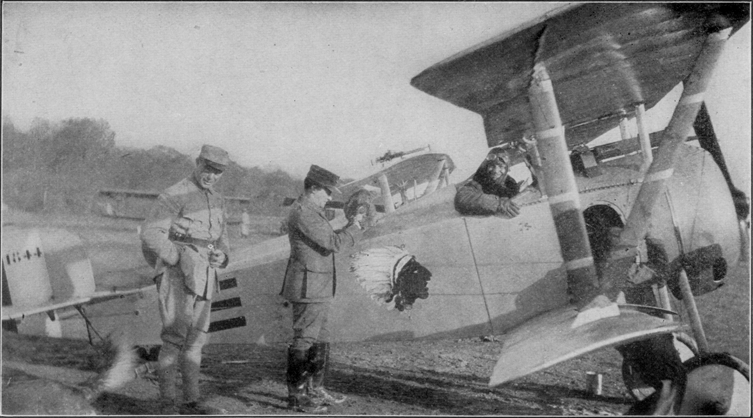 Marvelling afresh, the infantrymen demand further details. They learn that they are witnessing the return of the American Escadrille--composed of Americans who have volunteered to fly for France for the duration of the war--to their station near Bar-le-Duc, twenty-five miles south of Verdun, from a flight over the battle front of the Meuse. They have barely had time to digest this knowledge when other dots appear in the sky, and one by one turn into airplanes as they wheel downward. Finally all six of the machines that have been aloft are back on the ground and the American Escadrille has one more sortie over the German lines to its credit.