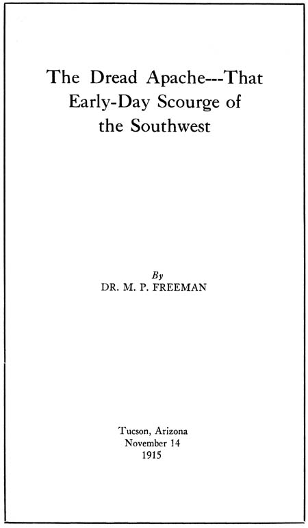 A short time ago, idling through a collection of early-day photographs, I came across two that vividly recalled the closing scenes in that bloody frontier drama in which the Apache was the chief actor. For many years the relentless foe of the pioneer, wary, tireless, cowardly and treacherous, he was the very incarnation of fiendishness, if possible, more pronounced in the squaw than in the man. Never meeting you in the open, always in ambush, concealed behind the big granite boulder, the point of a hill or a clump of brush, he and his fellows patiently awaited your solitary coming, all unconscious of danger, then—the crack of the rifle and it is all over. Today he might be a “sniper”, but in the days of his hellish activities the word had not yet been given its more recently enlarged meaning.