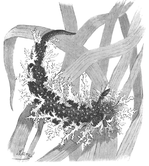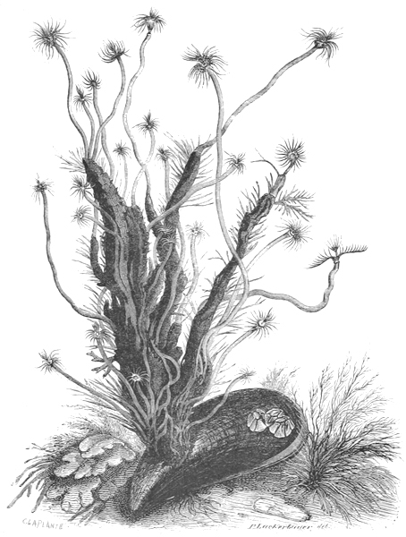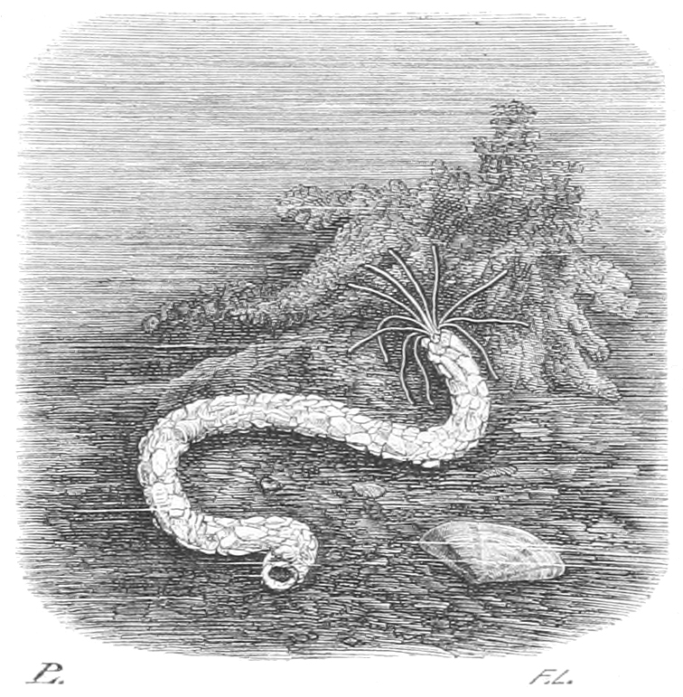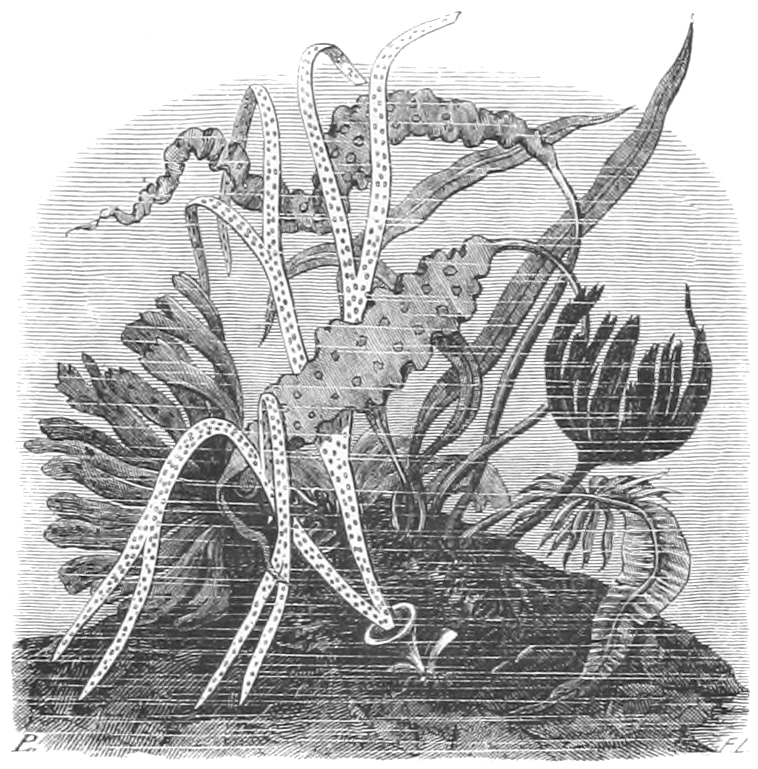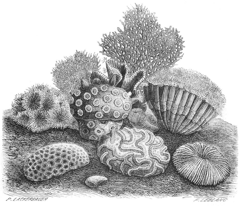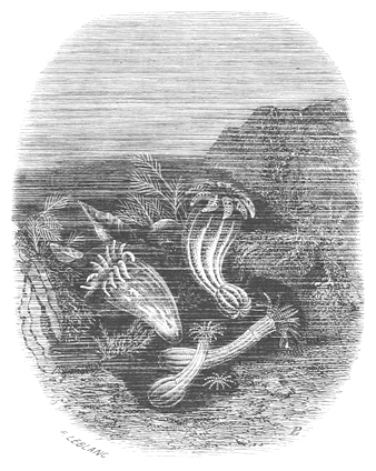 Des savants distingués, des amis, ont obligeamment contribué au Monde de la mer. MM. C. Vogt, de Genève; Is. Geoffroy Saint-Hilaire, Coste, de Quatrefages, E. Blanchard, Deshayes, Lacaze-Duthiers; P. H. Gosse, d’Angleterre; Sabin Berthelot, des îles Canaries; Aug. Duméril, Gerbe, Lespés, Auzias-Turenne....., ont communiqué des notes curieuses VII ou importantes, et des dessins inédits d’animaux parfois inconnus.