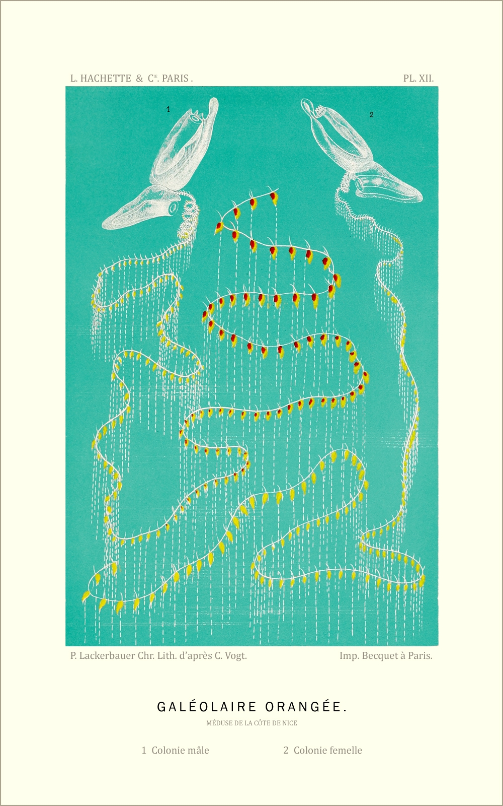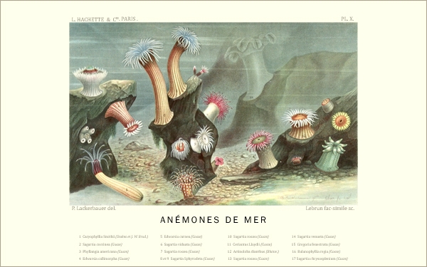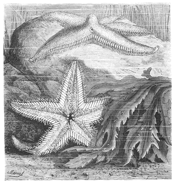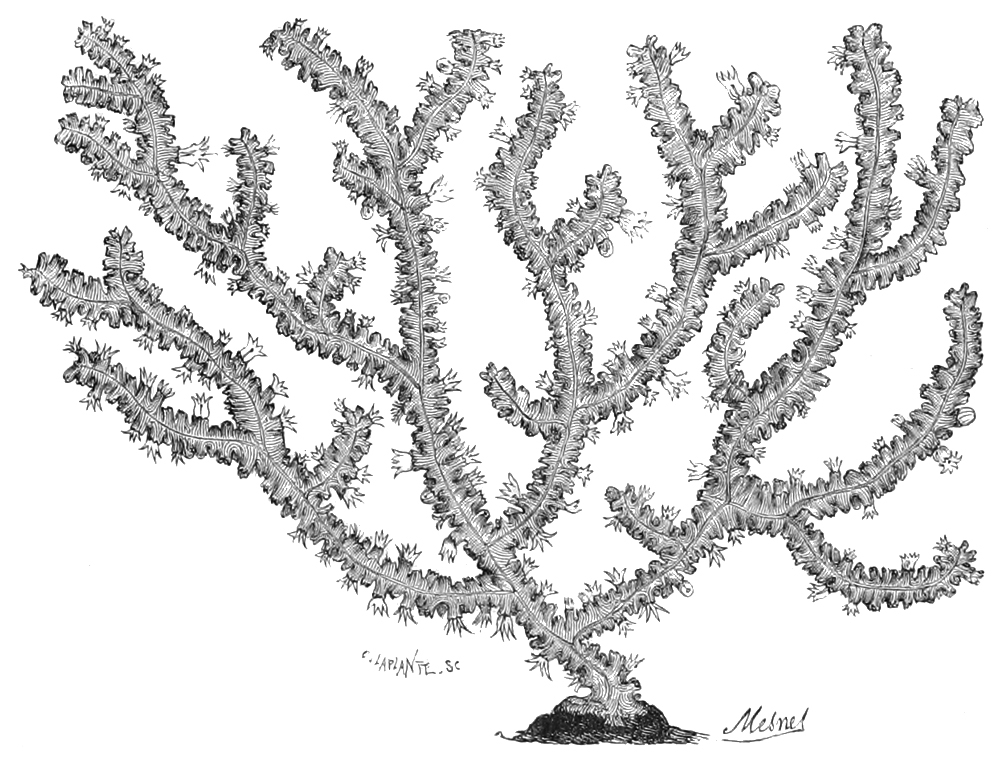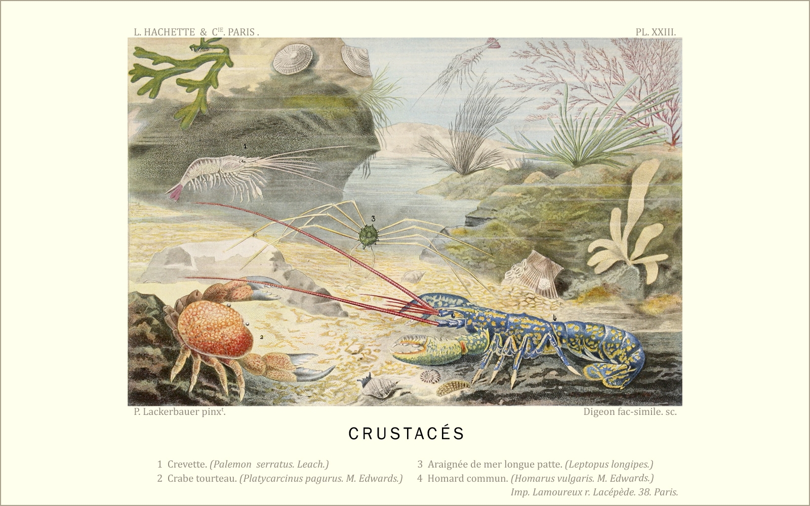 Des savants distingués, des amis, ont obligeamment contribué au Monde de la mer. MM. C. Vogt, de Genève; Is. Geoffroy Saint-Hilaire, Coste, de Quatrefages, E. Blanchard, Deshayes, Lacaze-Duthiers; P. H. Gosse, d’Angleterre; Sabin Berthelot, des îles Canaries; Aug. Duméril, Gerbe, Lespés, Auzias-Turenne....., ont communiqué des notes curieuses VII ou importantes, et des dessins inédits d’animaux parfois inconnus.