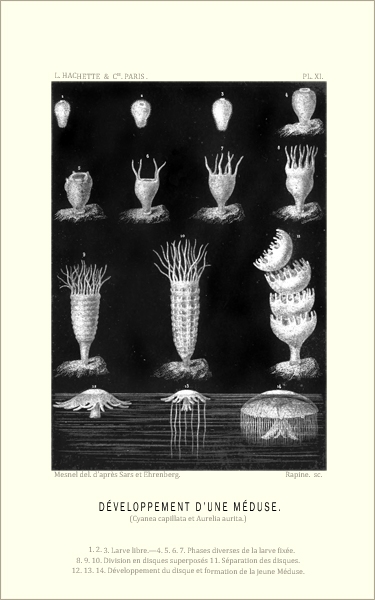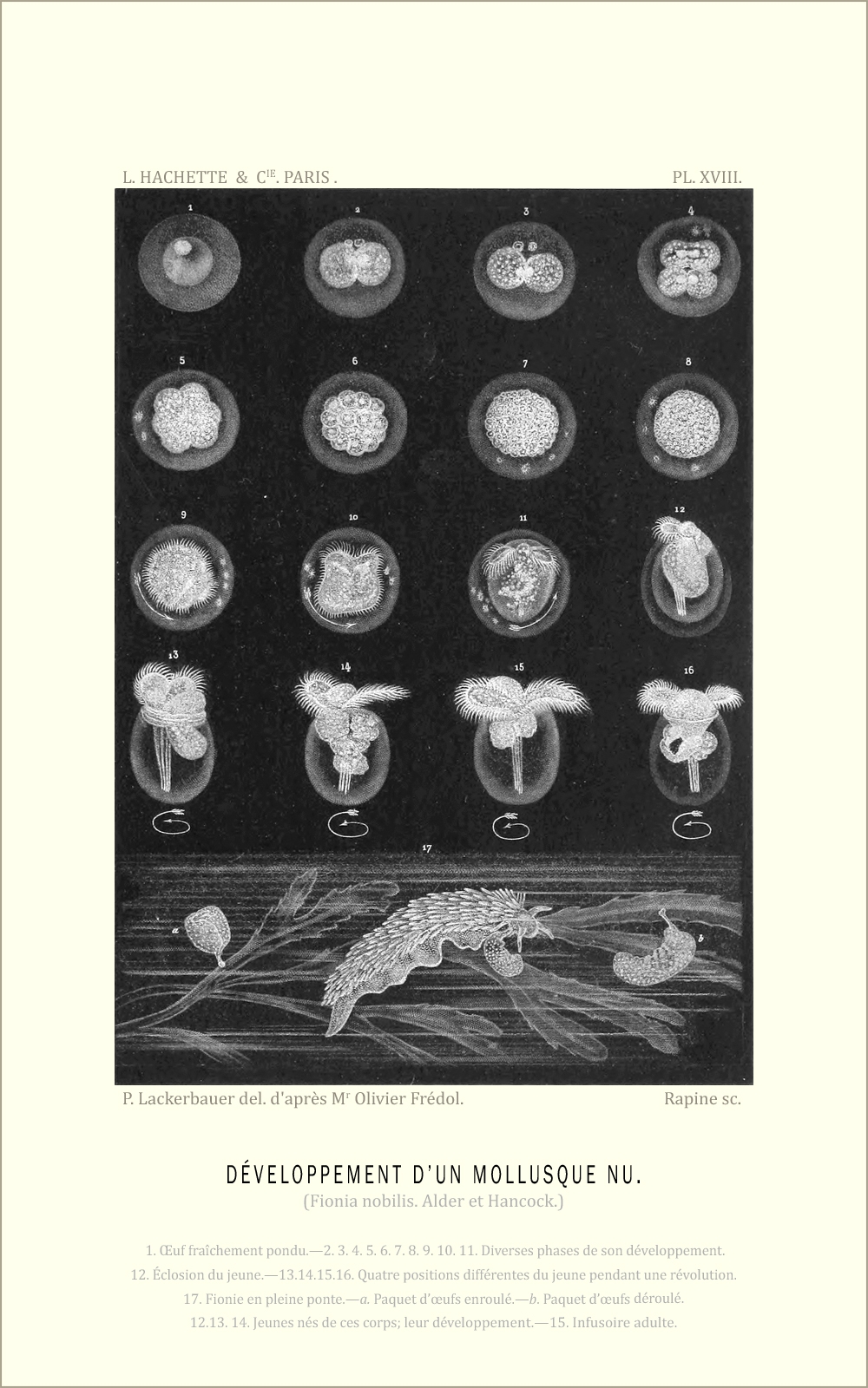 L’ouvrage est en outre augmenté d’un aperçu du développement des êtres; on peut suivre dans une série de planches les phases successives de leur formation.