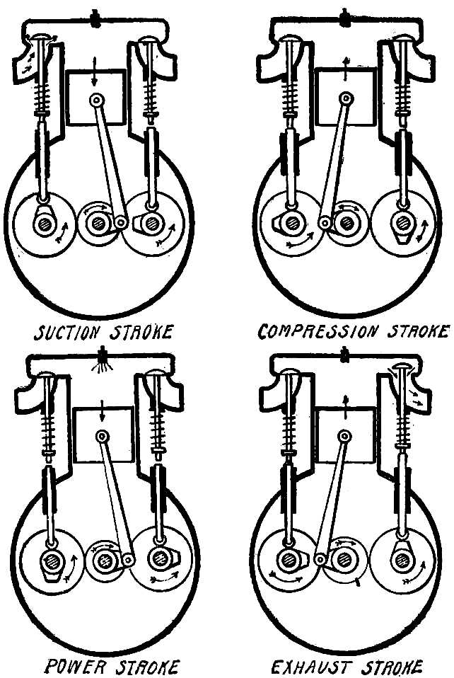 Properties of gases—Steam-engine principles—Gasoline-engine principles—Combustion and explosion—Events of cycle—Four-cycle and two-cycle engines—Strokes of cycle—Fly wheel—Valves—Inlet stroke—Inlet valve closing—Compression-combustion stroke—Advantages of compression—Instant of ignition—Advancing and retarding ignition—Limit of compression—Power stroke—Heat losses—Opening of exhaust valve—Exhaust stroke—Clearance—Back pressure—Steam and Gasoline engines compared—Gasoline—engine power 1-19