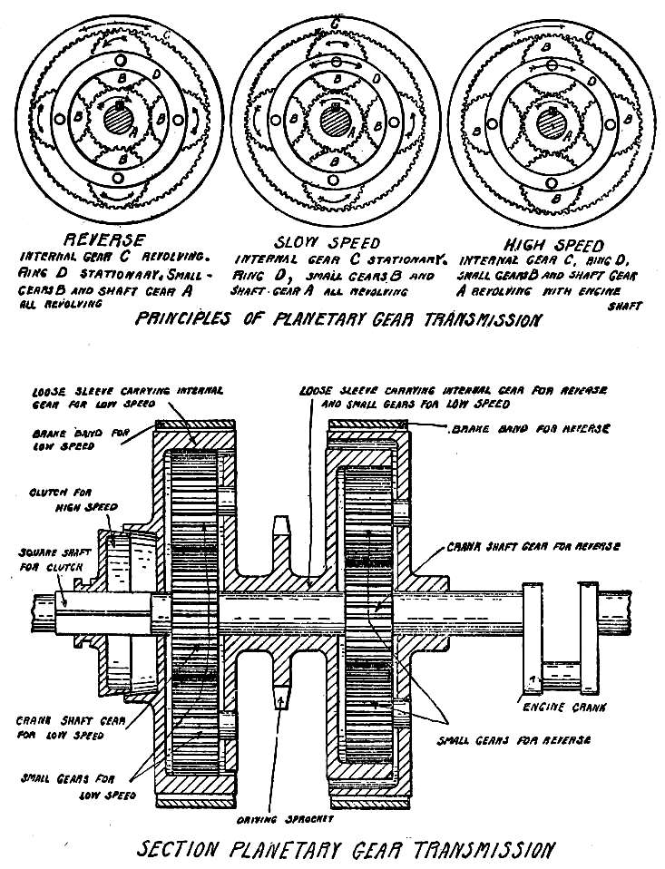 Planetary type of change-speed mechanism—Individual clutch—Friction type—Final drive—Turning the direction of the power—Bevel gears—Single-chain drive—Propeller-shaft drive—Universal joints—Live axle—Floating axle—Torsion rod—Double-chain drive—Jack shaft—Differential—Bevel-gear differential—Spur-gear differential—Driving-gear ratios 132-160