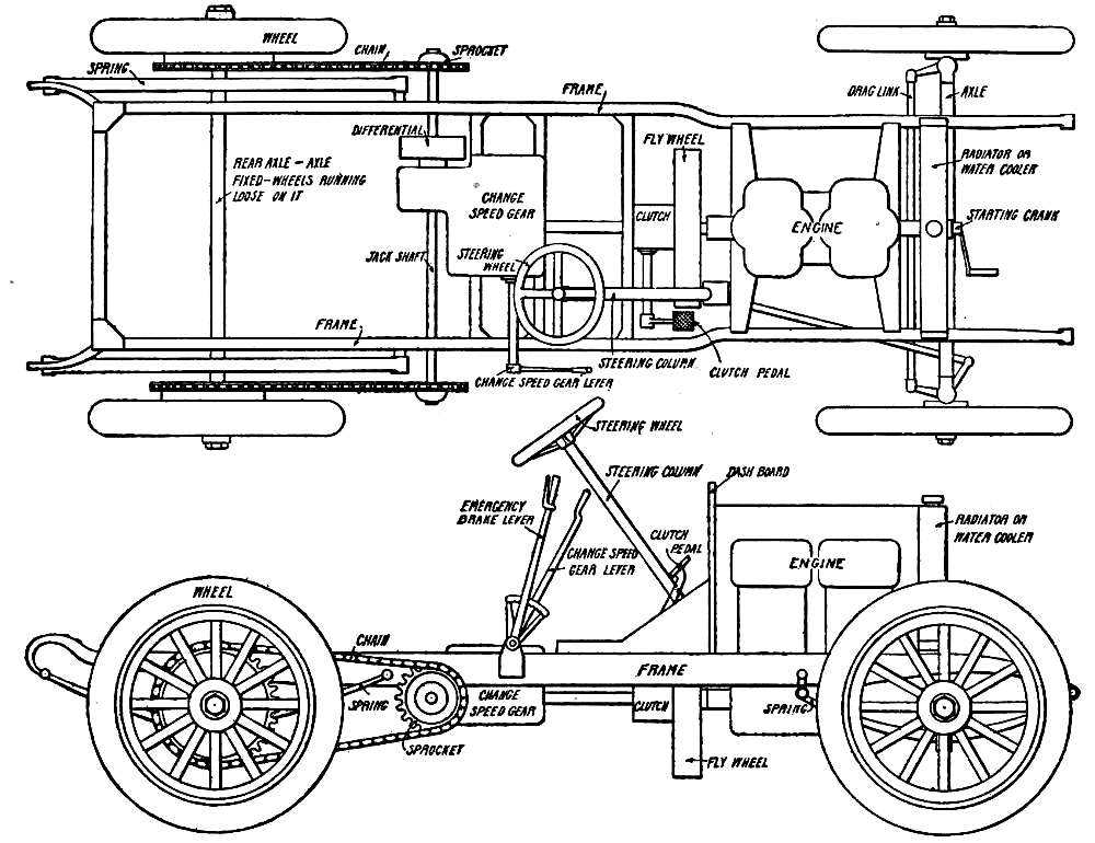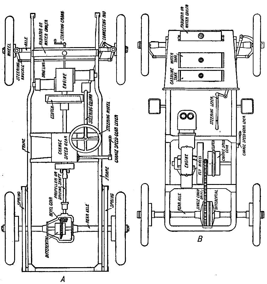 The development of the gasoline automobile at home and abroad has produced a great variety of designs, good, bad, and indifferent, but the advancement of the industry has weeded out the unsatisfactory and improved the good until with few exceptions the leading makes show a striking similarity in all but details. The advantages of certain forms of construction have been recognized, and their adoption by the large majority of makers has produced what may be called a standard type.