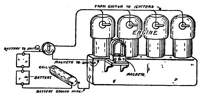 Ignition system—Electric current—Parts of ignition system—Flow of current—Conductors and insulators—Resistance—Measurements of current—Lead and return wires—Grounding the return—Generators—Dry cell—Storage cell—Electrolyte—Hydrometer—Battery connections: series, parallel and multiple—Magnetism—Magnets—Magnetic lines of force—Magnetic field—Field and armature—Magneto and dynamo—Switch—Switch parts 74-90