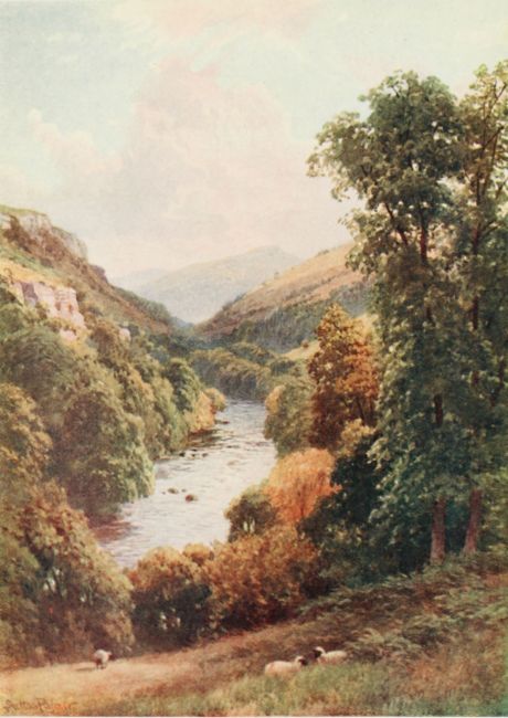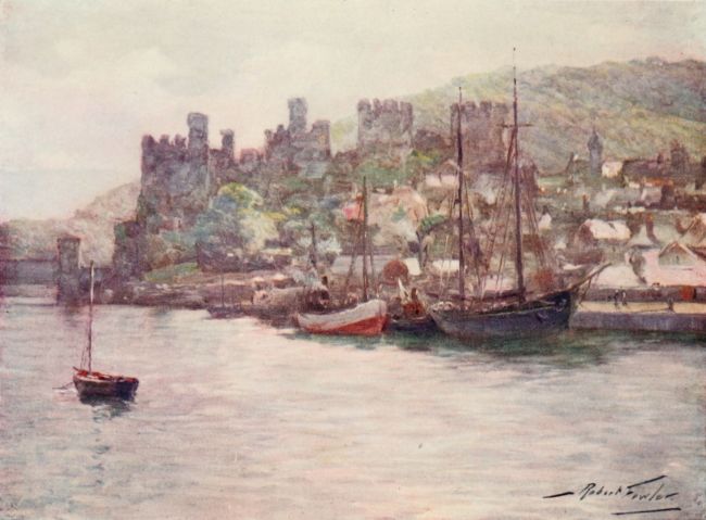 And let not those of us who “have no Welsh” be daunted by the apparent difficulty of pronouncing the names of these places. A Welshman will tell you that his language is “phonetic”—that is, pronounced exactly as it is spelt! Nor is this rule misleading if we will but bear in mind that dd is sounded like the English th in breathe, that ff is f, and f is v. W is sounded like oo; y is u if it comes early in the word, and i if later; aw is ow; and ll is best pronounced, on one authority, by pressing the tongue against the front teeth and breathing hard.