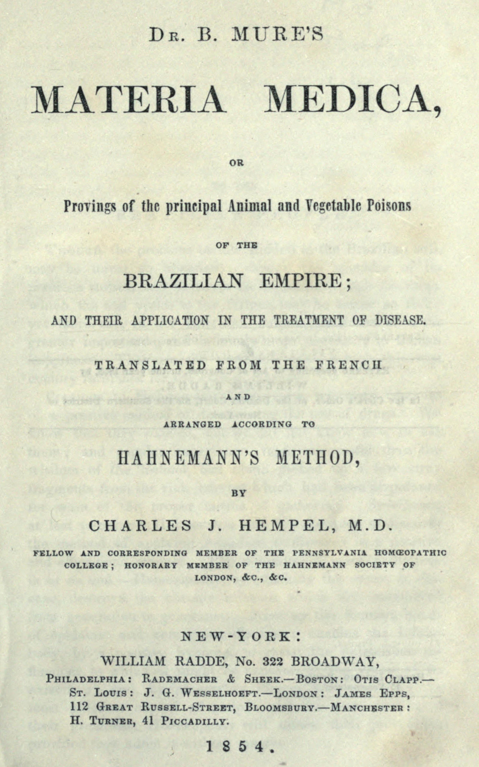 or, provings of the principal animal and vegetable poisons of the Brazilian Empire, and their application in the treatment of disease
