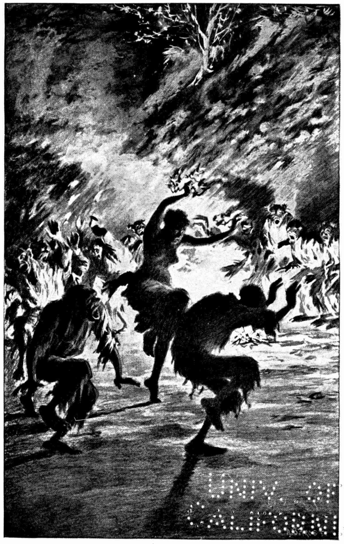 Just about that time, came the dance of the hoodoos at the dark of the moon, and in the flare of the torches the devil and Unc’ Caspar stood disguised, in the doorway of a cabin, and looked on; and as ’Liza led the dance, with her face distorted with ecstatic passion and swaying her body almost to the ground, Unc’ Caspar again pressed the devil for a comment; but again the devil cleared his throat, and said, “We’ll see.”