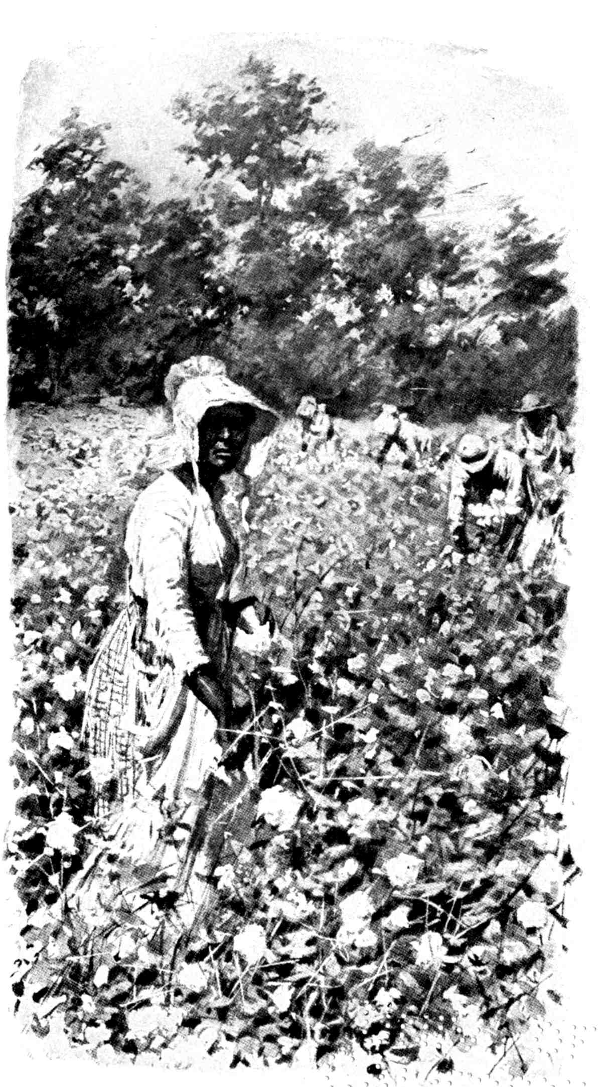 “Little Miss,” still sweet and dainty in her dimity, smiles over her netting and slips the beads upon the scarlet threads or sorts her crewels in the shady porch, for at the other end, just out of sight, the old split-bottomed hickory chair resumes its familiar “thump” to the music of a negro voice.