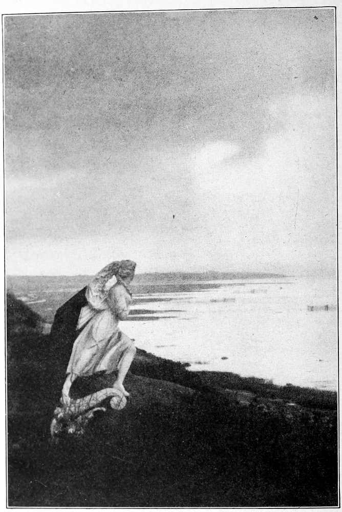 There, at one point, the tide marches out a long mile to the Great Bar and back again, by appointed channels, unhurrying, punctual to the minute, to keep its tryst with the shore. Sailors, unless they have a care to the time, are likely to be “hung up” on the Bar; but for one ashore who looks out to the white line of breaking foam, every moment of the ebb and turn has its special beauty. In bright days the shoaling waters show a lovely interlacement of greens and blue; but when the sky is shrouded in gray, fold upon fold, and the sun, invisible, steps softly westward,[Pg 15] their surface is like burnished metal, although a painter’s eye would discern there a pastel of mauves and pink and blue and a whole chromatic scale of green. White sandflats, disclosed by the ebb, are carved in whorls like a shell by the hand of the tide. Inshore plumy grasses fringe them; here and there infinitesimal forms of life stain them amethyst or green. But the wide sweep of them responds to some subtile quality in the day, and they are plains of pearl where cloudy shadows drift, or, in certain golden hours, they burn with color like some jewelled marquetry of the East. A flaming sunset walks them with feet of blood. And day after day they, or the waters above them, surprise us with some new sweet diversity.