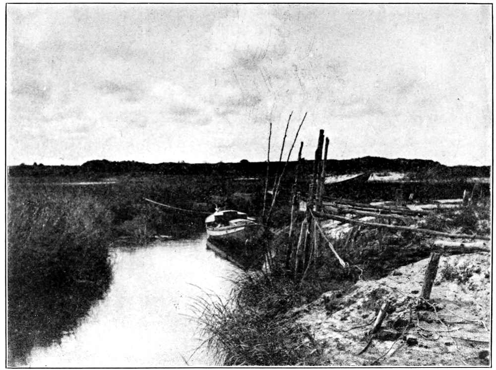 From the slender tip of Champlain’s Cap Blanc to Wareham one is never out of sight of water: salt here[Pg 14] and salt there, ocean and inlet and bay; and the great ponds of the uplands, or deep in its swampy covert a lake dropped from the jewelled chain among the hills. In the towns nearer the mainland are creeks and brooks and tiny runlets, flooded cranberry swamps, a ditch choked with the lush growth it nourishes; or near the beach a peat bog may wink unexpectedly from its bosky rim where a colony of night heron have nested to be near their feeding-ground in the bay. And when the tide is at ebb they and the seagulls wheel out there in airy platoons that manœuvre as if to catch the light on their ermine or sleek surtouts of gray. On the drying sands the gulls teeter about like high-heeled ladies on an esplanade until a stranded minnow changes the play and they pounce and cuff and scream like boys greedy for a penny. There are rich harvests for the hungry on these wide reaches of the sandflats, and even a glutton bird could gorge his fill upon the prey entrapped in the fish-weirs that dot the inner coast.