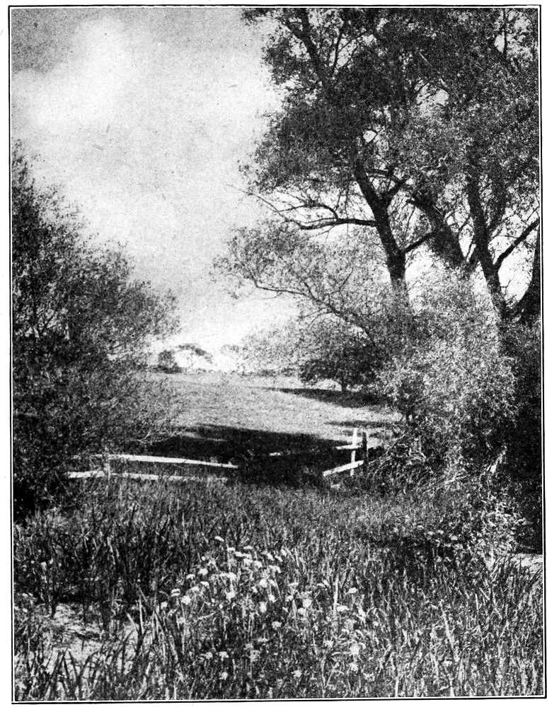 It is such a jaunt inland to the woods that should invite the traveller, in any season, to forsake his motor-car for a sober “horse and team” as the better equipment to circumvent obstacles of unbridged stream or fallen tree. If even as he threads the[Pg 5] crowded village street he can occupy his imagination with the leisurely past that matches the rate of his progress, his pleasure will be the greater; and the effort prove not too difficult when, as of old, poplar and willows shade the road and elms droop impartially over gray homesteads and the passer-by, or behind decent screens of shrub and hedge houses blink with a modest air of being sufficient for all desirable comfort. Farther afield wayside tangles of wild rose and cherry, and scented racemes of the locust-tree, in their season, make the air sweet; or in a later month, bright companies of orange lilies are drawn up at attention by the rail fence that has worn to a beautiful silvery hue, and Joe Pyeweed nods at thoroughwort in the swamp. Fields of warm-toned grass roll down to the blur of willows in a meadow; in pastures intersected by crumbling stone walls stalwart purple and white blooms rout the fading mists of succory. And there on the outskirts of the village, hills are dressed in homespun woven of sparse grasses and crisp gray moss buttoned down with clumps of bayberry and juniper, adorned in summer by the filmy lace of the indigo-plant, and in autumn with a lovely cloak of dwarf goldenrod and asters.