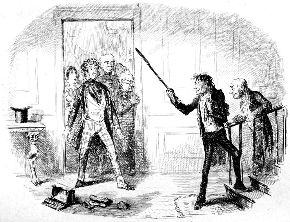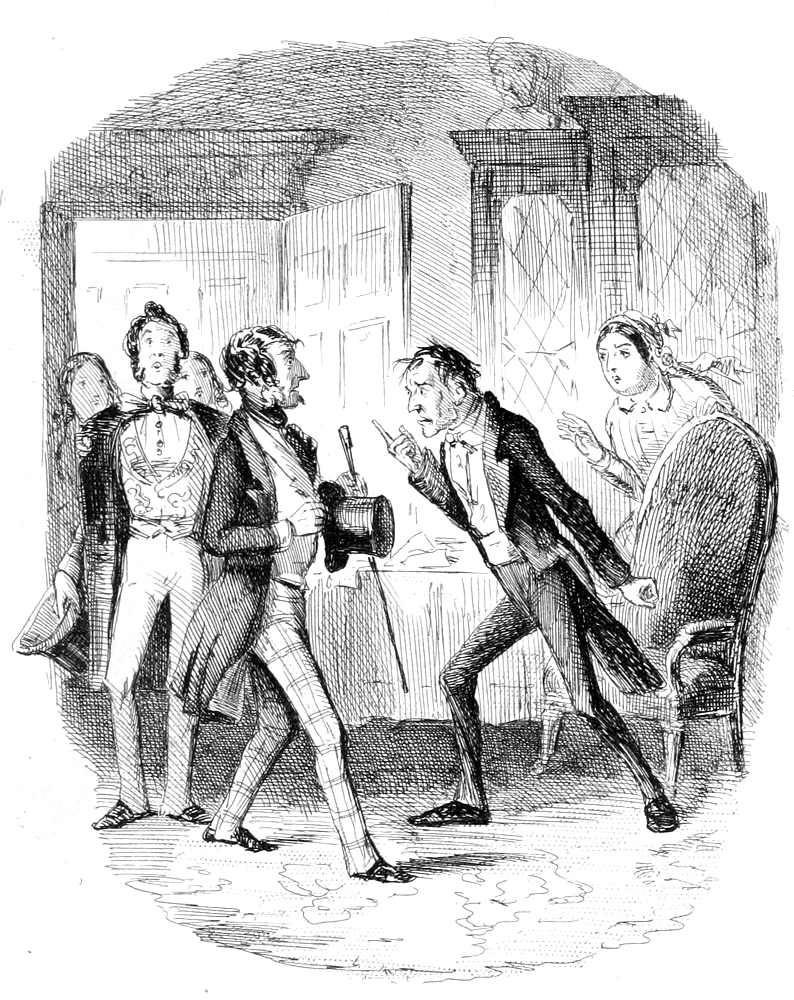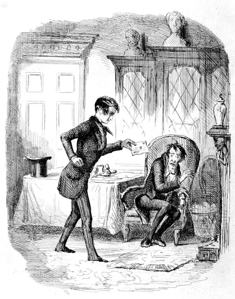 This curious question was coldly put by a gentlewoman in morning undress to a man in gown and slippers. The reader, who is always permitted to wear the old cloak of the old stage mystery—the cloak that maketh invisible—must at once perceive the tender relation that lives and flourishes between the interesting person who puts this familiar interrogative, and the being who suffers it. They are man and wife. The marriage certificate is legible in every line of Mrs. Jericho’s face. She asks for money with a placid sense of right; it may be, strengthened by the assurance that her debtor cannot escape her. For it is a social truth the reader may not have overlooked, that if a man be under his own roof, he must be at home to his own wife.