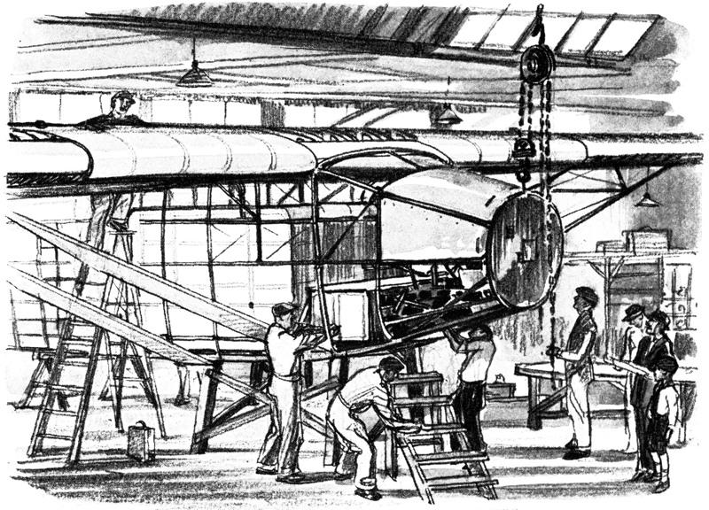 Kiwi had been taken to the factory twice. The plane looked 14enormous even in its unfinished state. The body of the machine still lacked its covering, but in its middle sat an enormous metal tank. Control wires seemed to run in all directions. The big wing also carried two tanks, and only the wing-tips were hollow. The engine was still missing. There were reports that it had been shipped, but for days after that it did not put in an appearance.