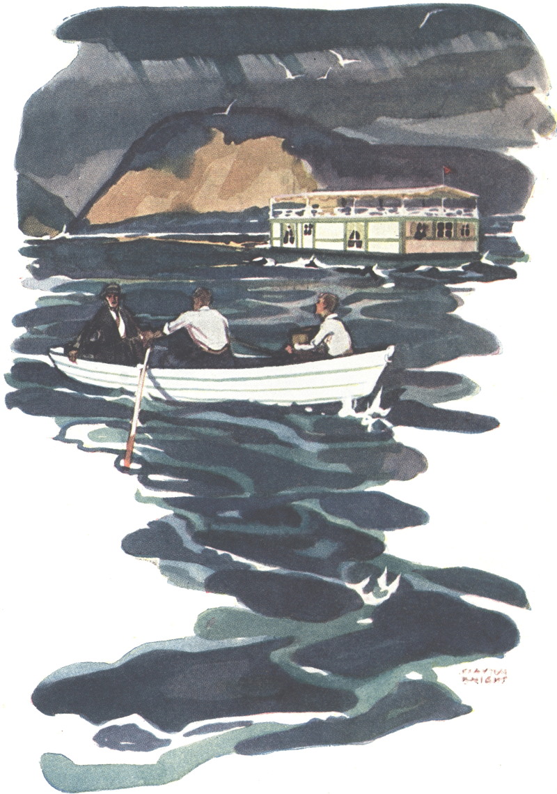 So now Jack and Kiwi sat there on the houseboat after supper, impatiently waiting for the sound of oars. About nine o’clock they heard a little boat bump against their home, and both rushed out.