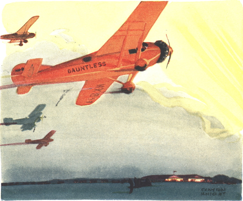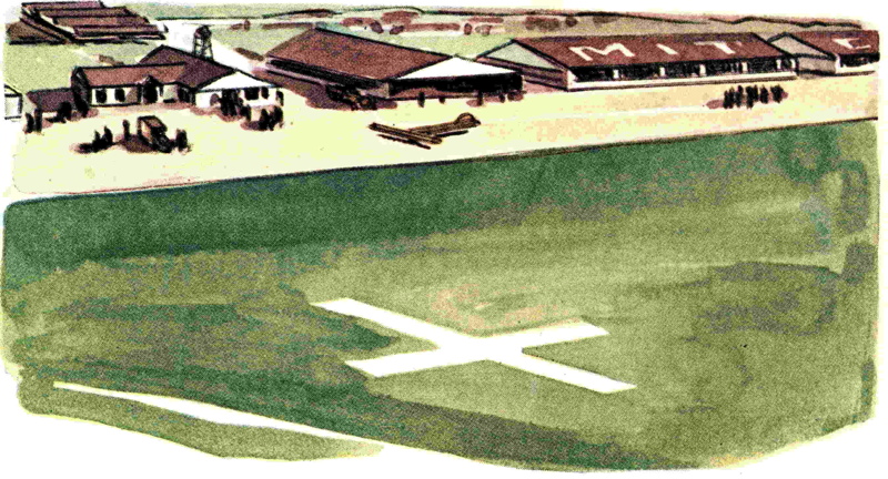 No strain ever quite equals that of a pupil’s first landing. No matter who the pupil is, everyone within sight or hearing 159pauses tense until it is over. The group stared, fascinated, as young Kiwi glided down, flattened out a few inches above the surface, and settled down to a perfect three-point landing.