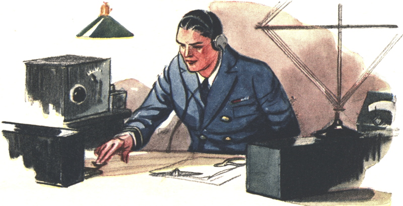 Kiwi put on the head-phones to listen while Connors clicked out a message to those soaring above. Jack had taught Kiwi the wireless code for his name, and soon he was thrilled to hear “H-e-l-l-o K-i-w-i” come down from the air.
