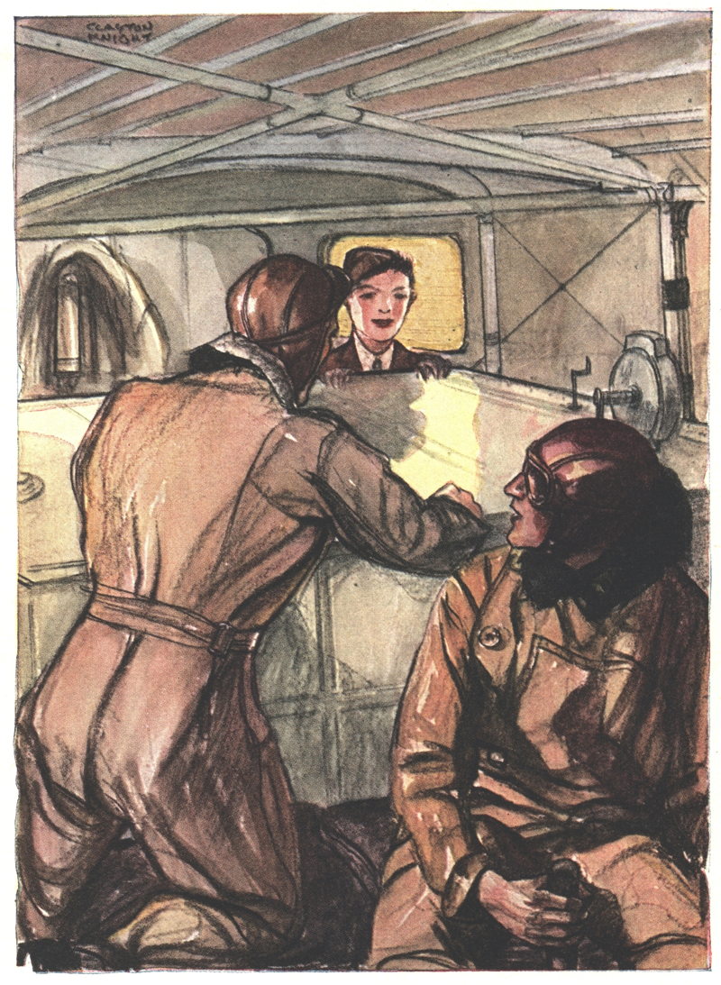 They were rowed out, and Kiwi spent busy minutes exploring the little houseboat. He came into the sitting room in time to hear Dad say to Bert, “As soon as the backers came across with the money, I wired Burrows to start work on the plane as we had planned it and to rush it through so that we could make our tests and still get off in June while the weather was good. Then I turned heaven and earth trying to find Jack. I had no idea whether he was out East with the fleet or had come back. When I did locate him, he was able to get leave from the Navy to make the flight, and hopped a train for Washington and got right to work on weather maps. He seems to have the navigation part of our trip very thoroughly in hand. Tomorrow I will get over to the factory and see if they cannot be hurried with the plane.”