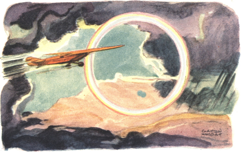 They watched him as he at last tired of flying and came down to rest on a solid-looking cloud above their heads. He got out of his machine, waved to those far below, and stretched out on the soft surface of the cloud for a nap.
