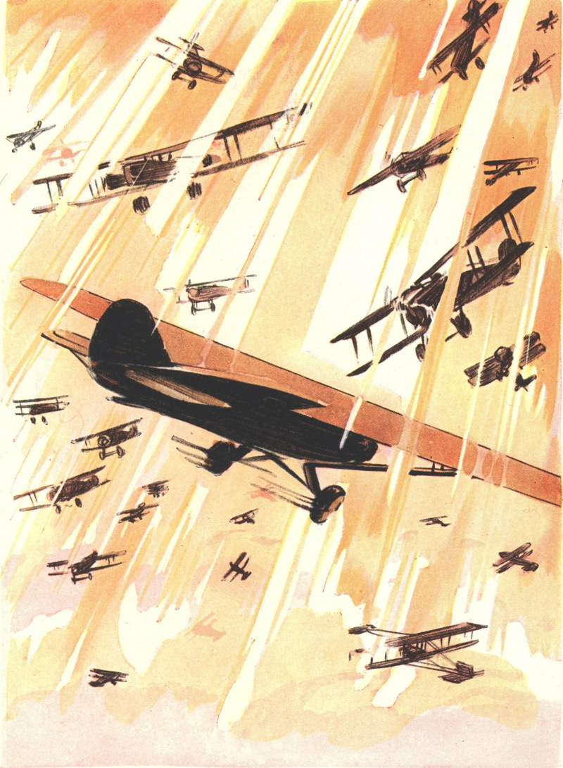 After this explanation they went up very high to practise vertical turns. There were many other planes much higher than they, and Armbruster called out: