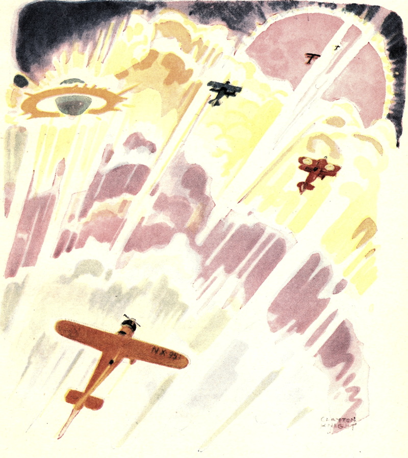 “Lower and lower we slipped through the still air. For a few moments I was a little confused, but upon switching on the light on my instrument board and consulting my map, I located a particular road that led through a large forest. By this time my spy was also leaning far over the side, and as we came lower he pointed out the field we must land in.