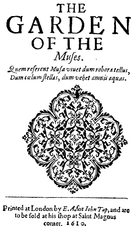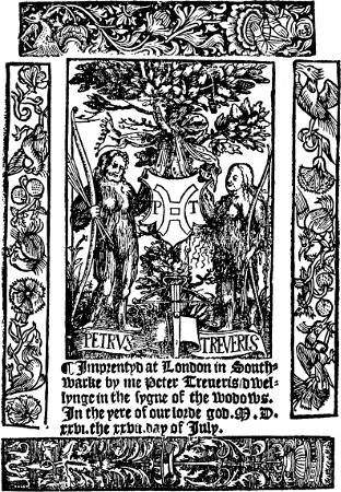 Printers’ ornaments include head and tail pieces, initial letters, borders to title-pages or text, and decorative blocks such as those which were used freely by the sixteenth century printer, Henry Bynneman, and others. Printers’ devices, being in the nature of trade marks, have no place in this volume, as, although decorative in themselves, they were not used simply for the sake of embellishing the page.
