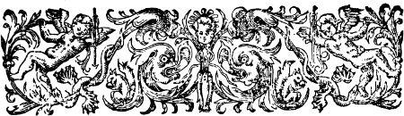 This was in the infancy of the art; but as it gradually emerged from its swaddling clothes, printers discovered various ways of increasing the beauty of the printed book. First they adopted a title-page, quite a modest thing at first, which for its brevity has been called a ‘Label’ title. Next they conceived that the appearance of the title-page would be improved if it had a border like the first pages of the old manuscripts. Then it occurred to them that it would look better if the printed matter were begun lower down on the page, leaving a blank space above. In course of time these blank spaces, and those which generally followed at the end of dedicatory epistles and such like, were ornamented, whatever was used for that purpose being called by the names of head or tail piece. Occasionally the printers even went so far as to fill up the spaces at the ends of paragraphs with[6] small ornaments, a wholly unnecessary labour which was soon dropped.