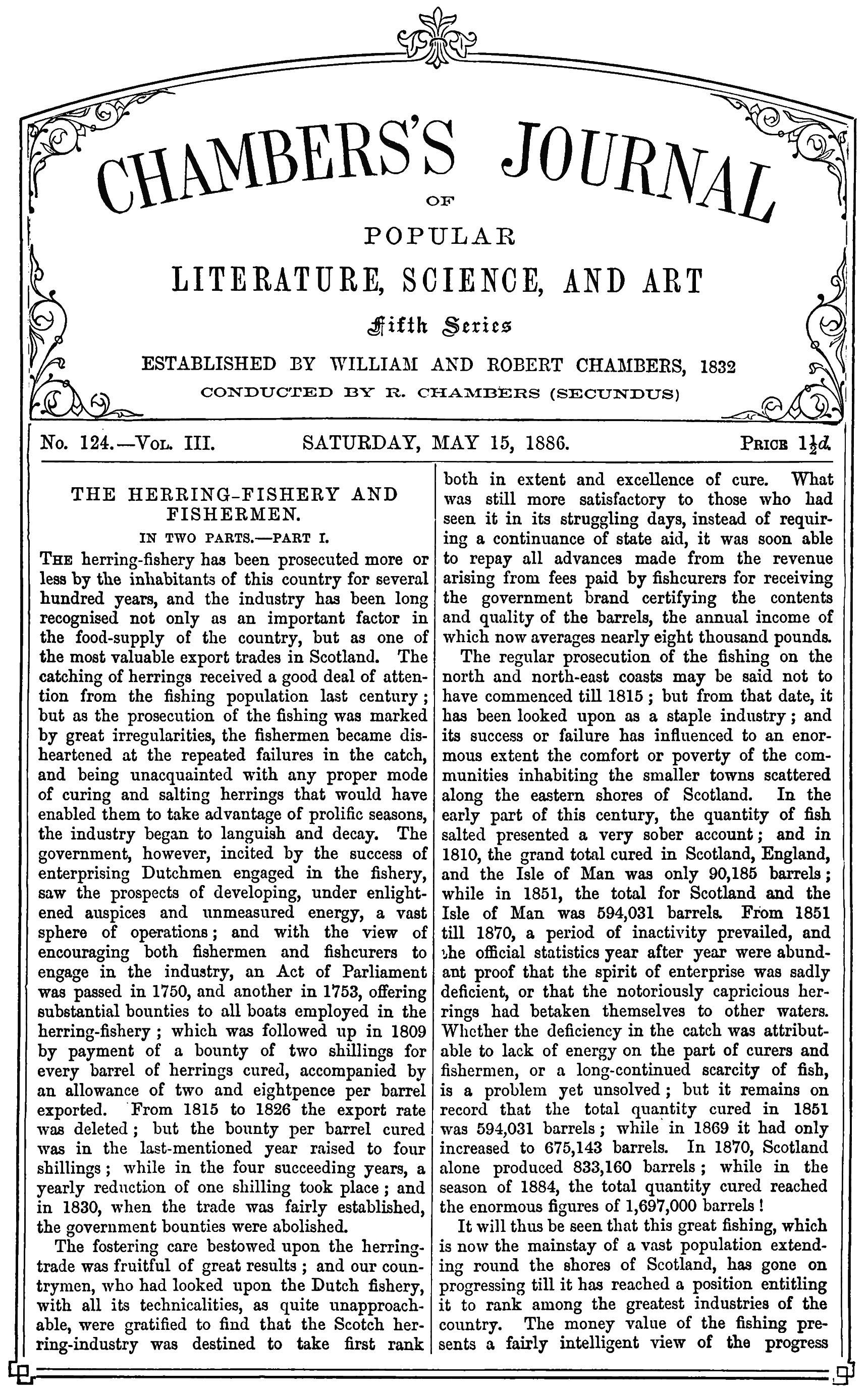 Title: Chambers's Journal of Popular Literature, Science, and Art, fifth series, no. 124, vol. III, May 15, 1886