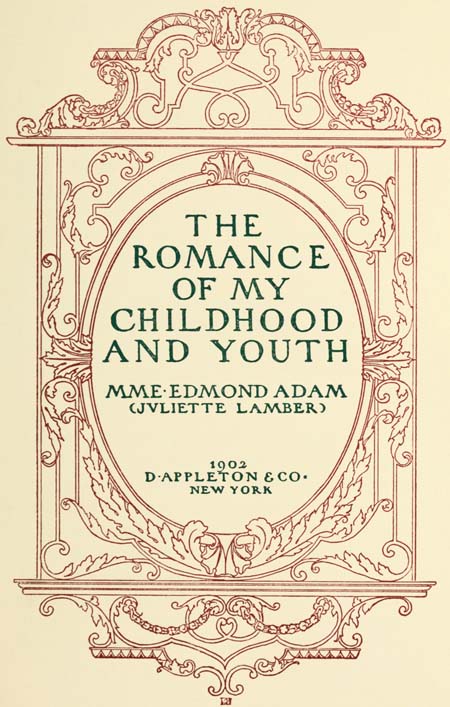 The Project Gutenberg eBook of The romance of my childhood and youth, by Juliette Adam