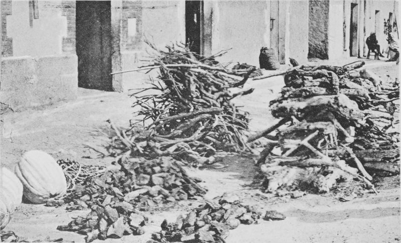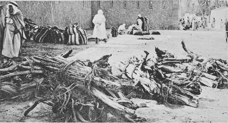 Fig. 2. Wood market at Laghouat. Juniper, oak, pine, and other kinds of wood, each bunch a camel load, exposed for sale.