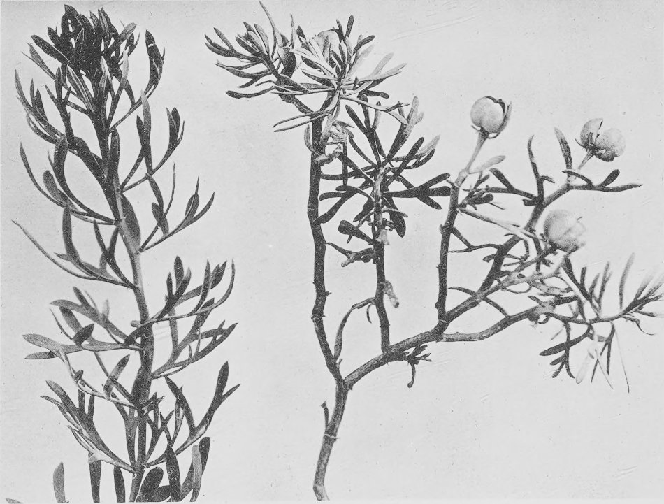 Fig. 56. Ouargla to Touggourt. Leaf-habit of Limoniastrum guyonianum. The surface of the leaves is covered with an incrustation of salts.