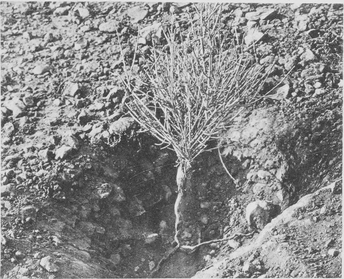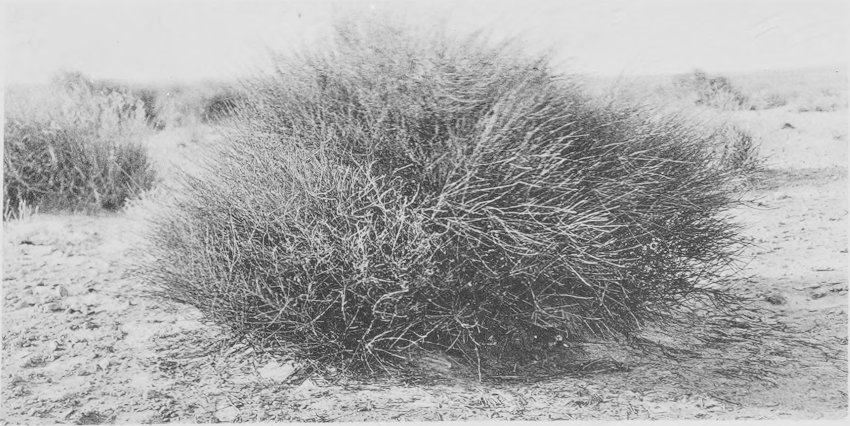 Fig. 82. Root and shoot habit of Peganum harmala, Biskra. The main root is especially well developed although the species has a generalized root-system. (See text.)