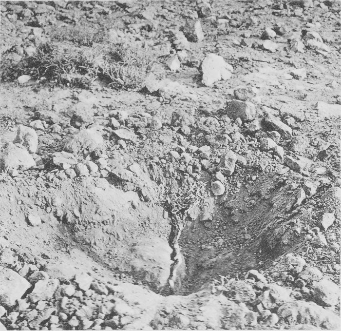 | 17. | Detail of an eroded bank of the Oued M’Zab at Ghardaia. The overhanging stratum is hardpan similar to the “caliche” of southwestern United States. | |||