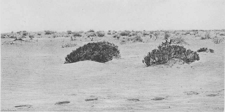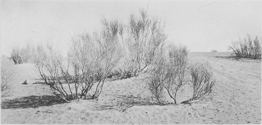 Fig. 47. Sandy flood-plain of the Oued M’Zab, about 63 km. from Ghardaia. Retama, Genista and Ephedra are the leading plants in this place.