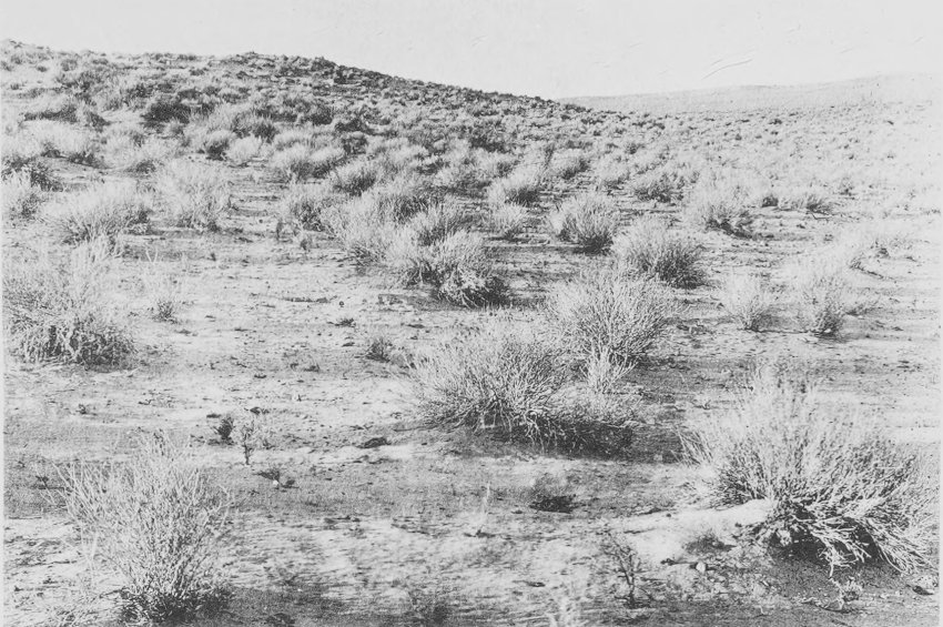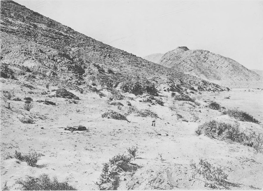 Fig. 66. Characteristic vegetation on the north slope of the Djebel Bou Rhezal, Biskra. Haloxylon scoparium is a prominent species.