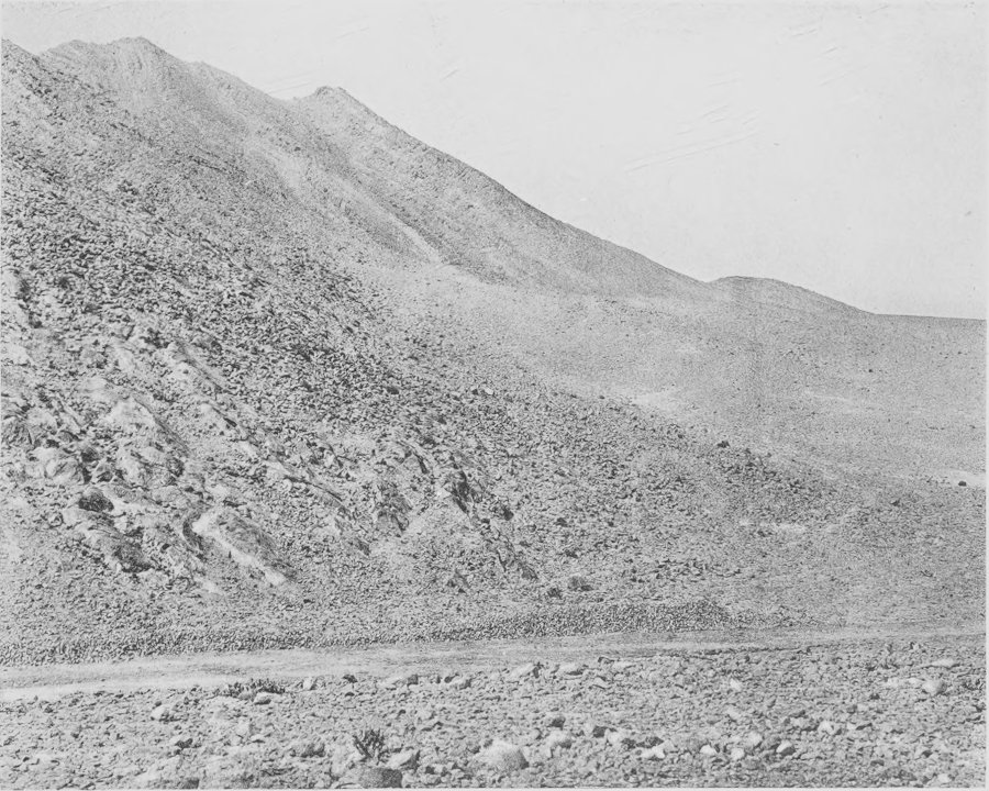 Fig. 84. General view of the north face of the Djebel Bou Rhezal, Biskra. Apparently barren, plants are rather numerous in the rock crevices and small washes of the mountains.