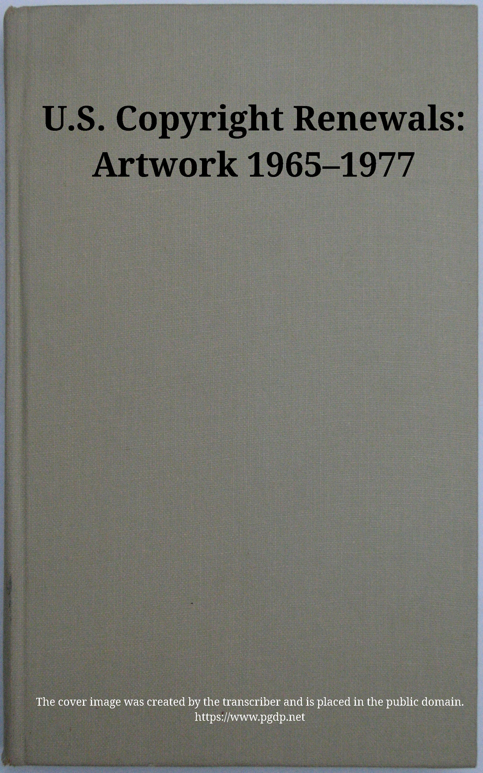 The Project Gutenberg eBook of U.S. copyright renewals: artwork 1965-1977, by Copyright Office