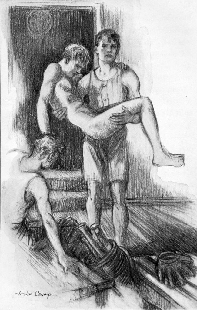 Thatcher, who had lingered on the side line of the court long enough to see Hoffman shoot the basket and win the game, was joined by the four other freshman players and two substitutes and together they made their way to the spiral stairway that led to the locker room in the basement. No one spoke a word for some time until Buck Hart, the captain and center, a second year man but taking some Freshman work in class and thus eligible for the “fresh” team, crossed over to the bench on which Thatcher was sitting and slipping an arm across his shoulder affectionately, said:
