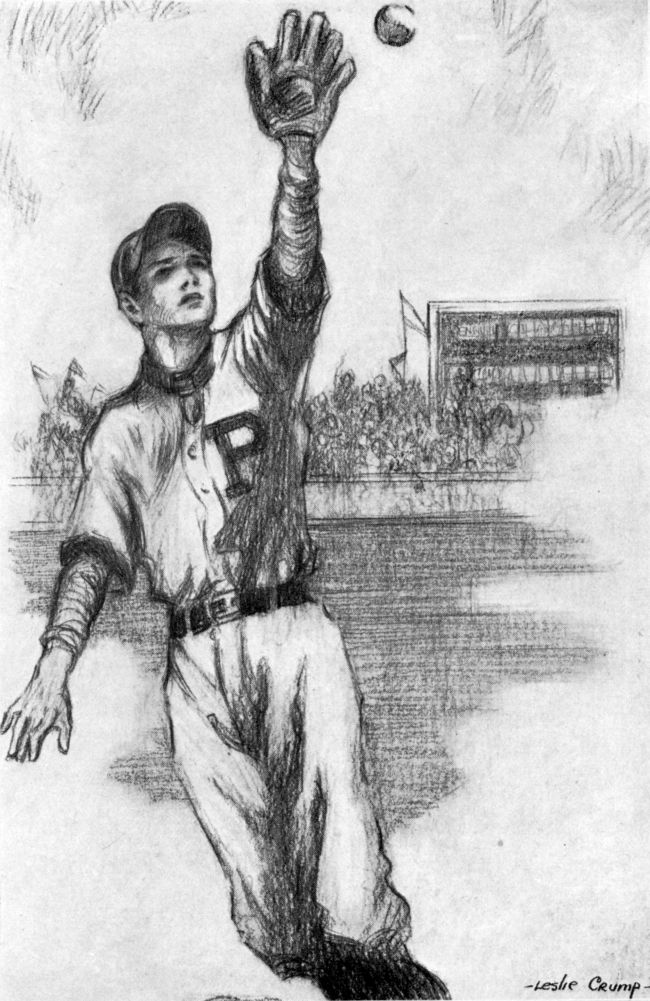 Honey looked desperate as he faced the Lawrencetown pitcher, but Wells, as cool as could be under the pressure of excitement, never wavered. He paid no attention to the men on base, and pitched to the batter as if he were the only man in the game. He put a perfect strike over for the first ball. Then Honey drew two balls in succession and another strike. With two and two, Wells tried to put over the third and final ball, but Honey saw how good it was and slammed at it. It was a beautiful line drive toward second and it certainly looked as if Honey had succeeded in poking out the necessary hit to score Thatcher. Jeff and Buck, running on anything, tore around the bases madly, but as Jeff rounded third he heard the plunk of ball against leather and he turned his head in time to see Southers coming down from a remarkable jump. He had made a wonderful catch and shut off the chance that[277] Pennington had to add at least one more run to its advantage. The side was retired, but the score still stood 2 to 1 in Pennington’s favor in the beginning of the ninth.
