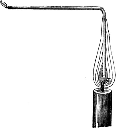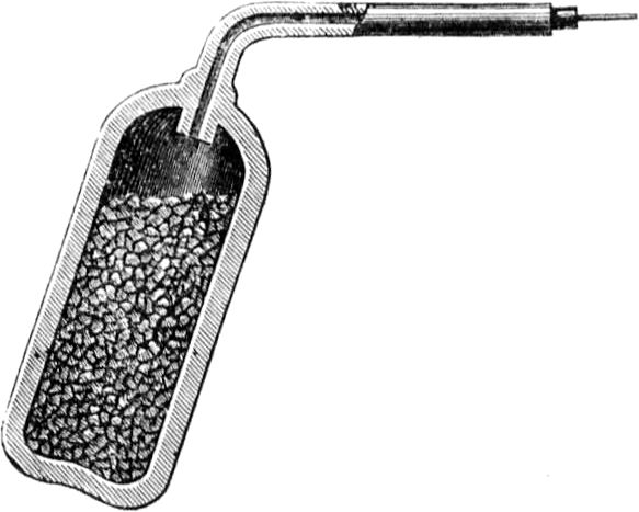 [24] Der gewöhnliche Salpeter – bekanntlich ein Bestandteil des Schießpulvers – kann zu diesem Zwecke verwendet werden. Auch das chlorsaure Kali eignet sich gut dazu. Es enthält viel Sauerstoff und gibt denselben, wie aus dem S. 124 Gesagten hervorgeht, beim Erhitzen leicht ab.