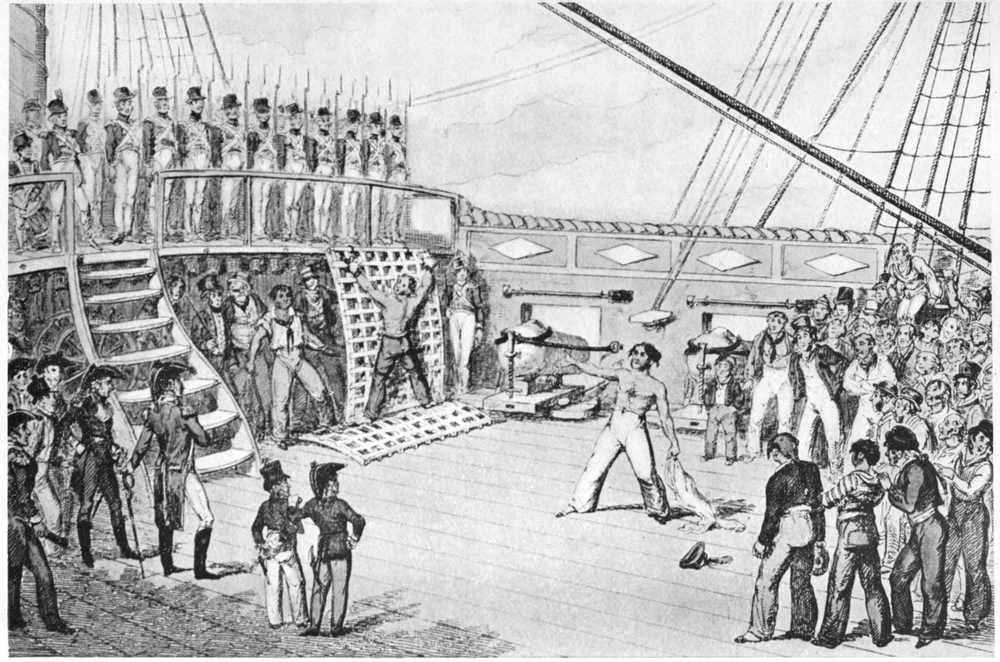 Many of our sailors deserted to the French, Spanish, and American services, where the routine was a little less severe, and the pay no worse. Those who were taken in foreign ships of war were invariably hanged at the fore yard-arm.