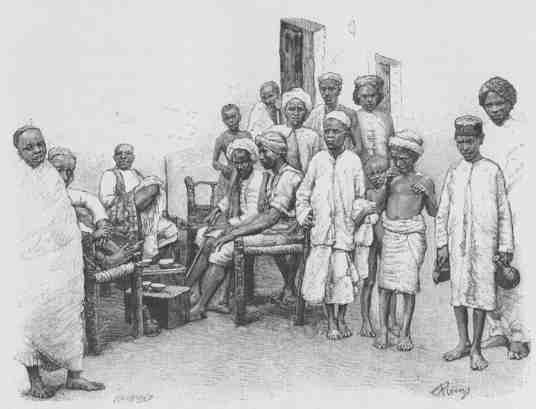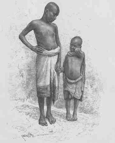 Ces mœurs sanguinaires s'harmonisent si bien avec le caractère de la race, qu'un homme ne saurait trouver femme s'il n'a prouvé sa valeur par l'assassinat de l'un de ses semblables. Les familles prévoyantes achètent même de vieux nègres affaiblis et les livrent à leurs enfants en bas âge; les chers bébés peuvent ainsi conquérir la plume noire et satisfaire sans danger à la loi cruelle de la tribu.