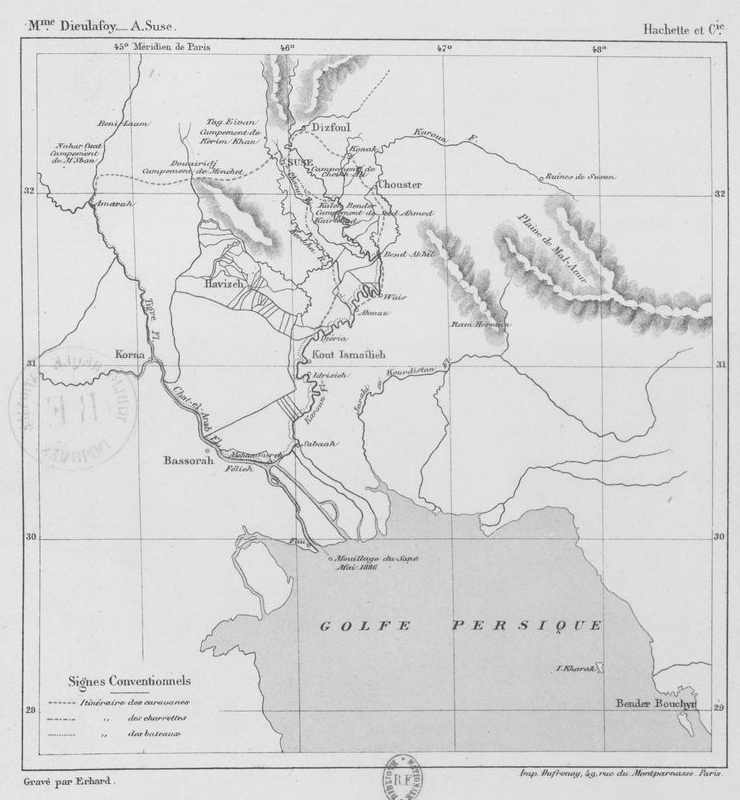 Le gouvernement persan présenta quelques observations relatives aux tribus pillardes de l'Arabistan, formula des craintes au sujet du fanatisme local, fit des réserves concernant le tombeau de Daniel, exigea le partage des objets découverts, réclama l'entière propriété des métaux précieux, et nous accorda l'autorisation de fouiller les tumulus élamites.