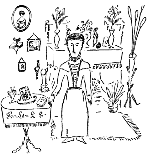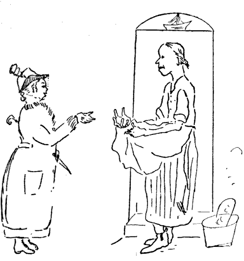 Cook, like the fly, takes wing as far as the kitchen dresser and returns; stands once more, as it were, washing her front legs in the doorway.