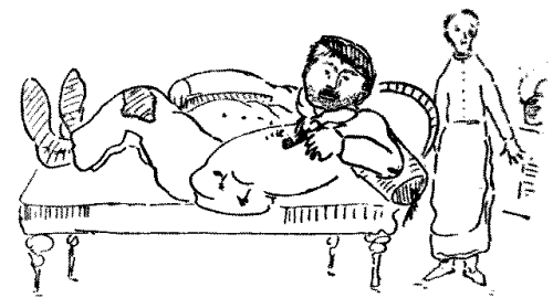 You quickly review last week’s meals. The household has had cutlets, fish, fowl, steak and a good many other things. Some[Pg 20] people dislike the insides of animals so we will not complete the list. Anyhow, they seem to have eaten everything that there is in the world, except veal. Your horizon is all veal. There doesn’t, in fact, seem to be anything but veal to eat, “without,” as cook says, you have just what you had yesterday. The sudden passionate anger of the interrupted flies to your head.