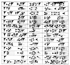 Extract from a List of Signs with Sumerian and Assyrian values. From Rawlinson, Cuneiform Inscriptions of Western Asia, Vol. II, Plate I, ll. 155–168.