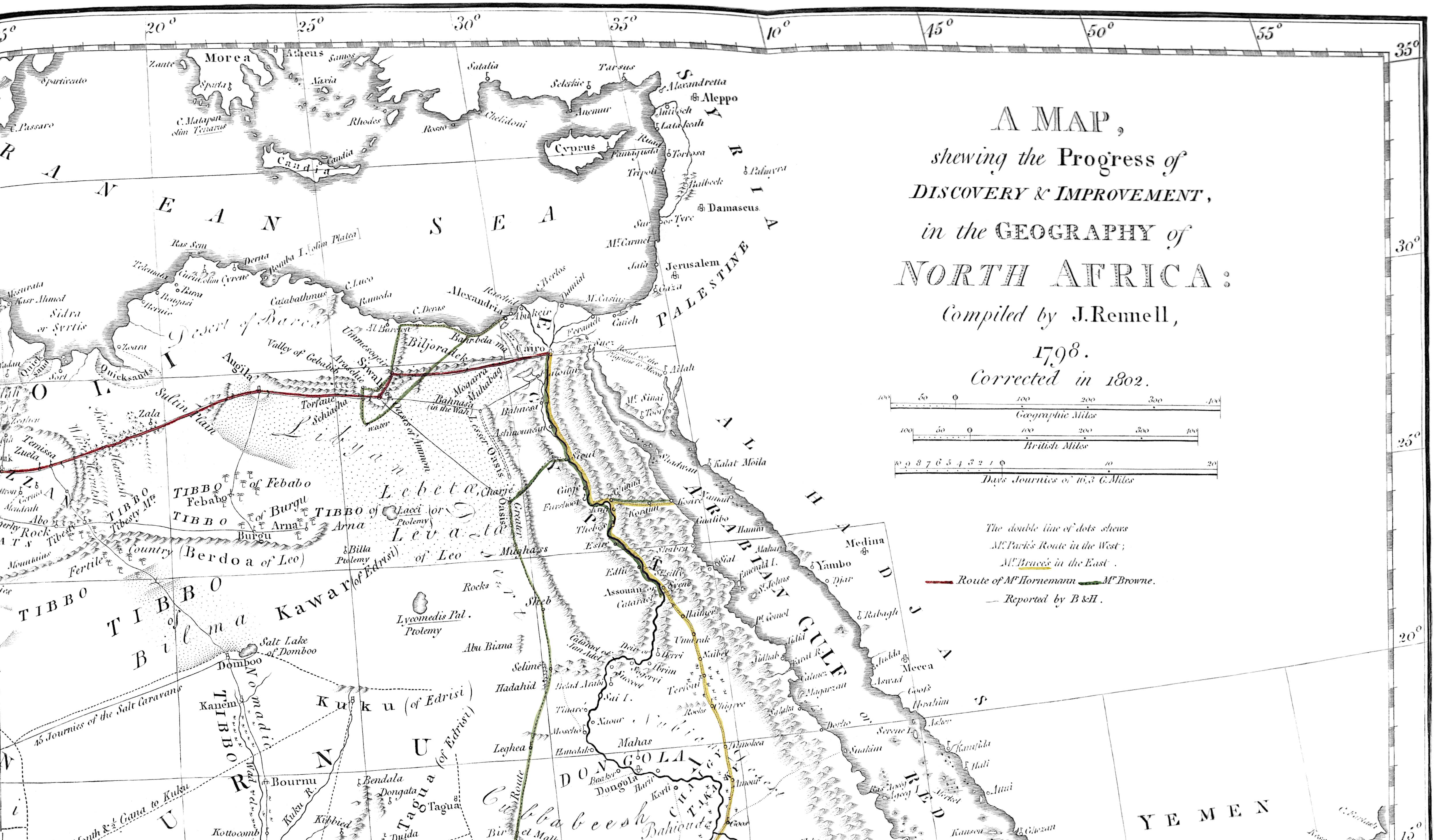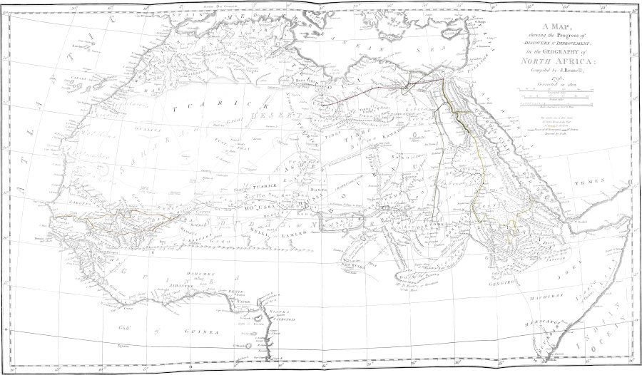 Were it necessary to illustrate such position by example, the writer would refer, as a special instance, to the elucidations of Major Rennell on the communications in question: to that most accurate and acute philosopher and geographer, the details have afforded matter of enquiry and deduction of the highest import to science. By analysis, and a comparative view of accounts given of journies and places, in reference to the plans of D’Anville, and other geographers; to modern travels; to ancient expeditions; to descriptions of ancient writers; and above all, to those of the father of history, Herodotus; Major Rennell hath corrected the map of Africa, with a learning and sagacity which hath converted conjecture into knowledge; and on experience of those who have explored parts of that great continent, given confidence to each future traveller who may visit its remotest regions.