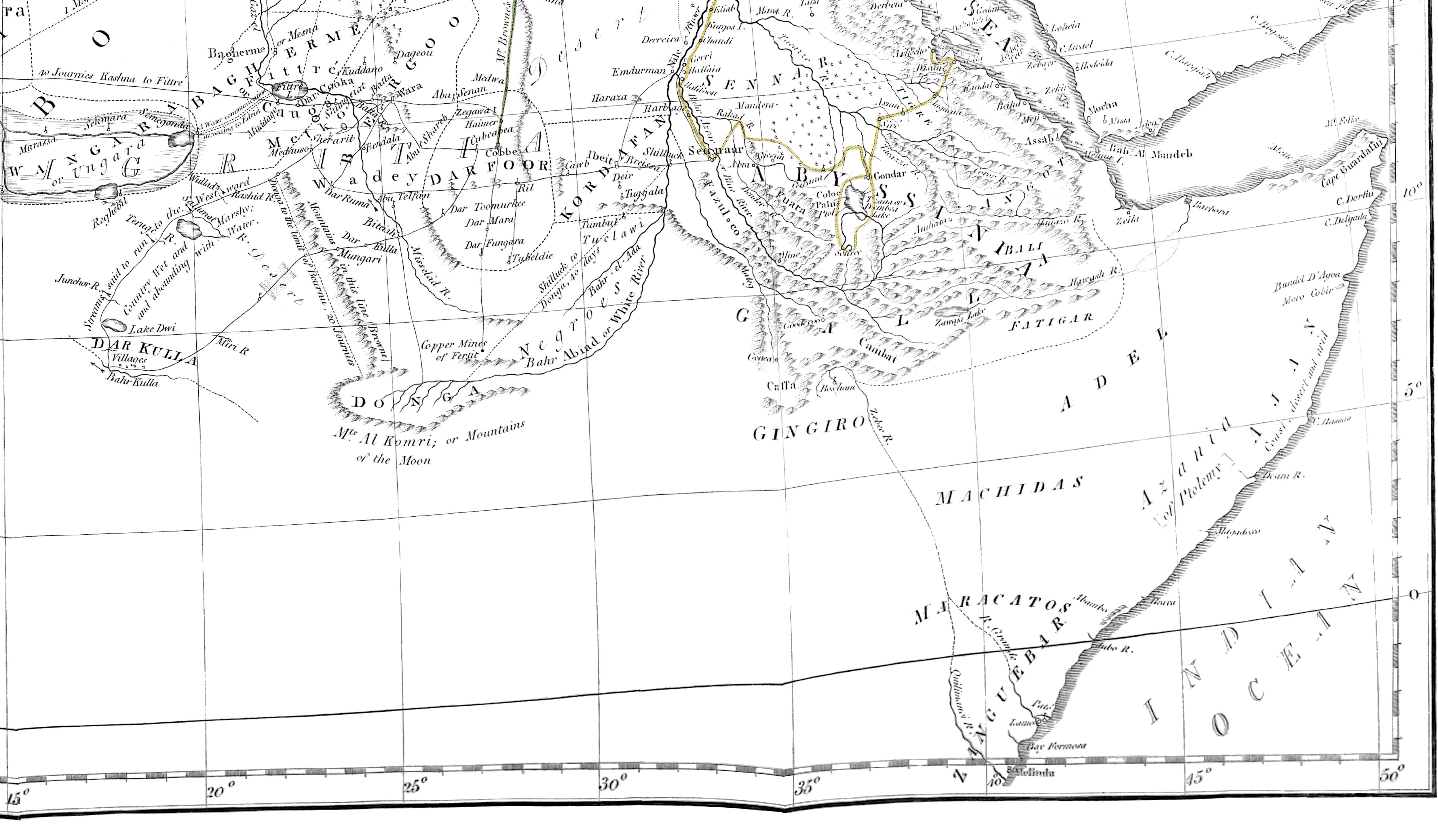 A volume of the transactions of the Society, printed in the years 1790—92, sets forth in detail, such communications respecting the Interior of Africa, as might be collected on inquiry from British Consuls; from the recital of Negro, or Moorish traders; or from that of Shereefs and others, who had passed with the caravans on religious pilgrimage, in different directions between Mecca and the various and remote stations of Mahomedans in Africa.